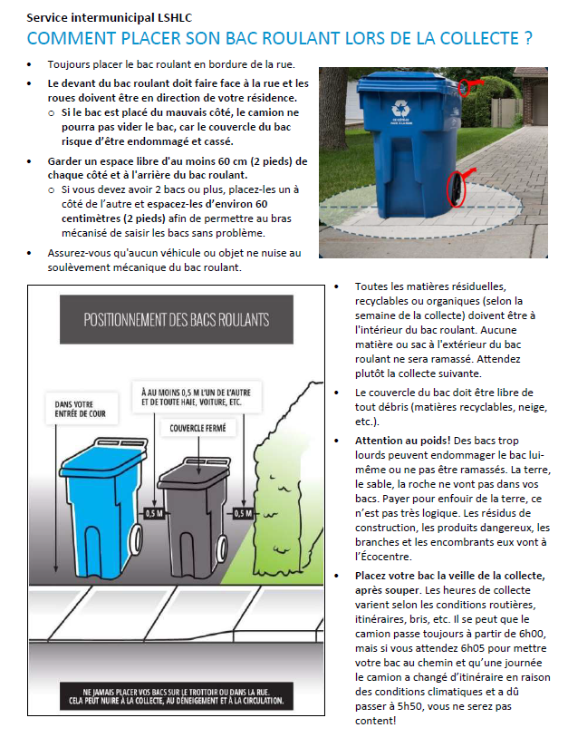 Le bac de recyclage demeure la propriété de la municipalité. Il porte un numéro de série qui est rattaché à une adresse civique. Si vous déménagez, le bac doit rester sur place.