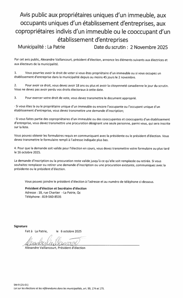 Voici les résultats de recensement du vote par anticipation et du scrutin du 2 novembre 2025 :