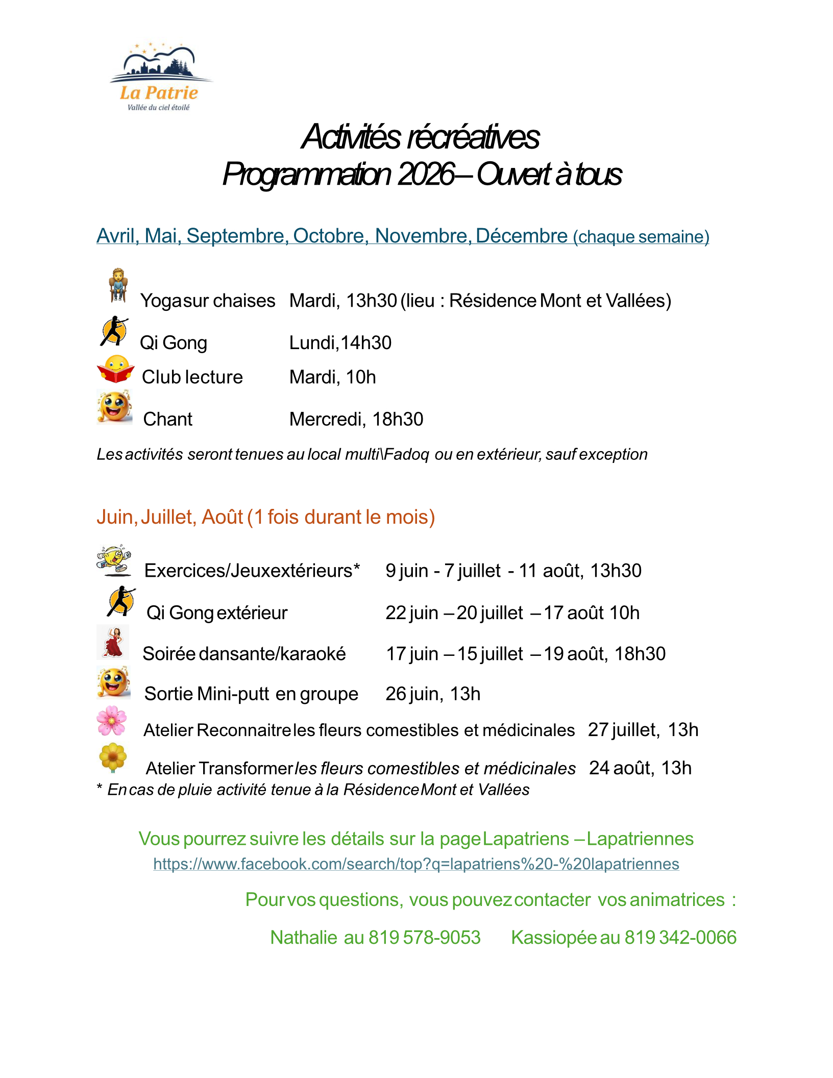 Pour demandes d'information ou pour réserver l'abri-bois, contactez Marie-France Gaudreau, 819-560-8535