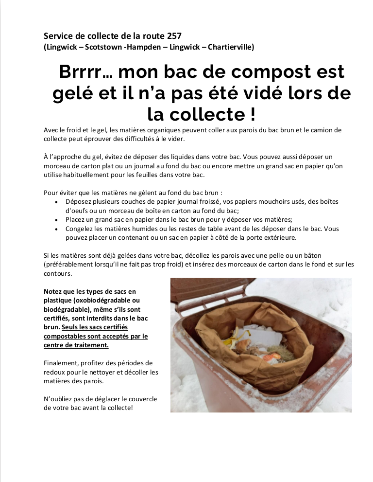 | Cueillette des déchets | Bac pas vidé | Écocentre | Écocentre mobile |