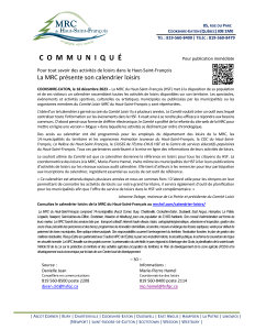 Communiqué concernant le calendrier de notre MRC.