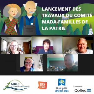 Nous tenons à remercier les citoyennes et citoyens de la municipalité qui siègent au comité MADA-Familles : Angèle Doyon, Mychèle Morin, Luc Bibeau et Hélène Côté. Le comité est présidé par Johanne Delage, mairesse de La Patrie.
