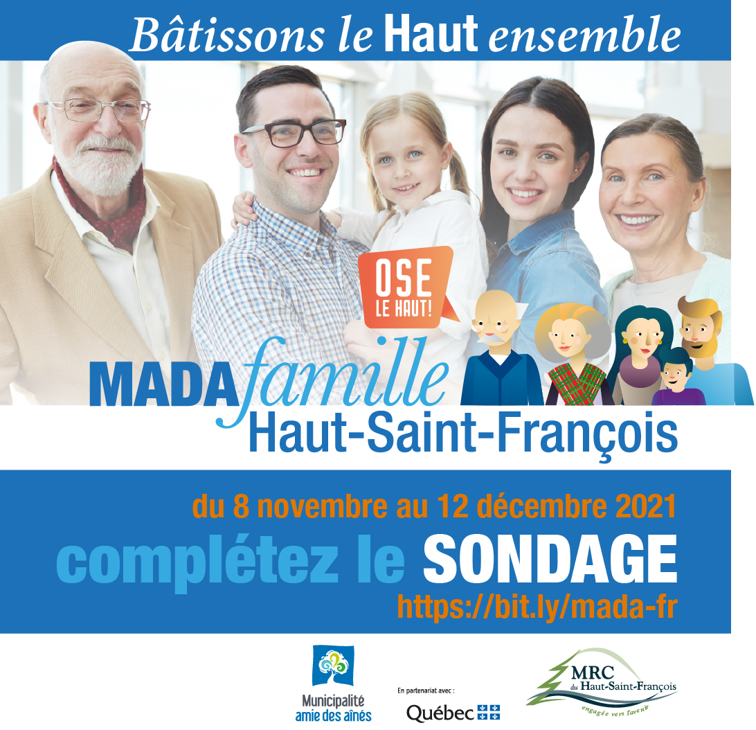En remplissant ce questionnaire, vous contribuez aux travaux des comités MADA-Familles en leur transmettant de précieuses informations sur vos perceptions des forces et défis auxquels font face les aîné.es et les familles de votre municipalité.