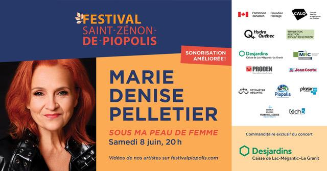 Marie Denise Pelletier célèbre 40 ans de carrière et fait un grand retour sur scène en solo, dans une tournée qui la mènera à l’église Saint-Zénon-de-Piopolis. La fabuleuse auteure-compositrice-interprète et une des plus grandes voix du Québec, revisite son répertoire avec sa nouvelle tournée Sous ma peau de femme ainsi que de nouvelles créations.