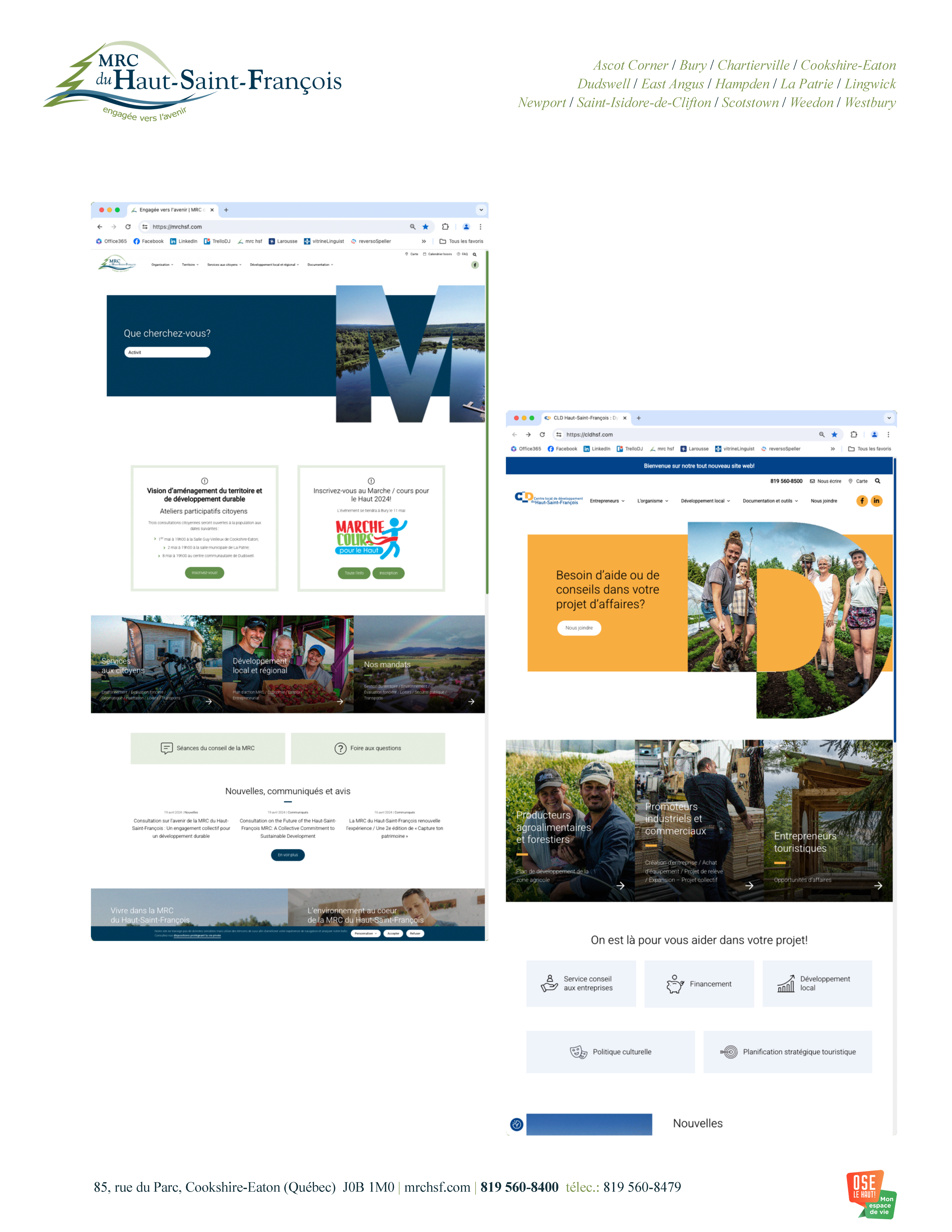 La MRC du Haut-Saint-François et son CLD dévoilent leurs nouveaux sites web !