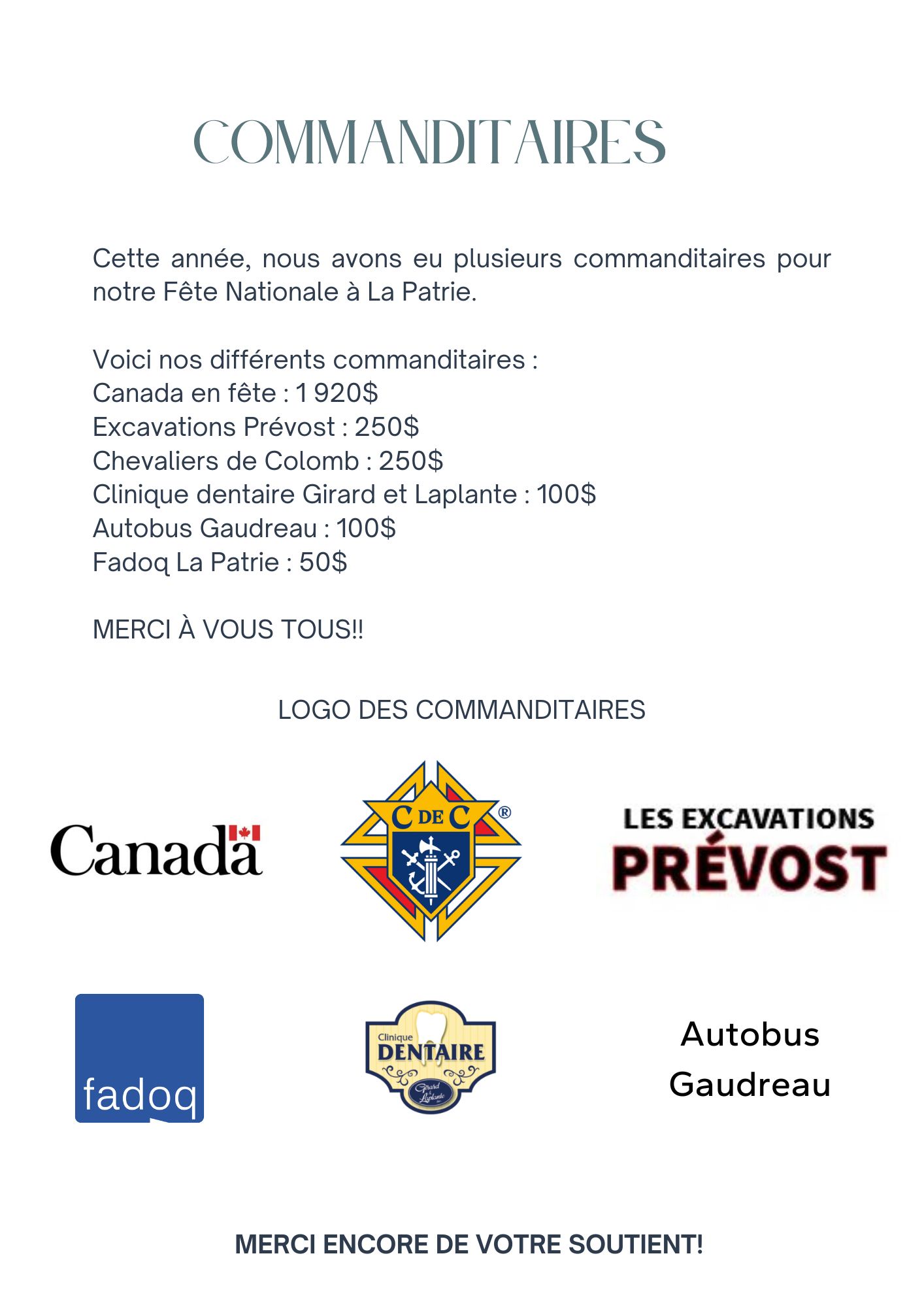 Un grand merci à tous ceux qui se sont rassemblé pour fêter avec joie cette Saint-Jean-Baptiste avec nous.