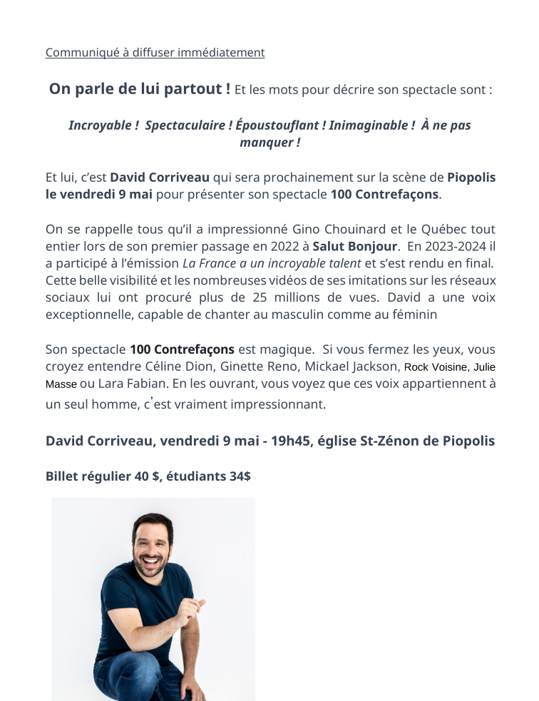David Corriveau qui sera prochainement sur la scène de Piopolis