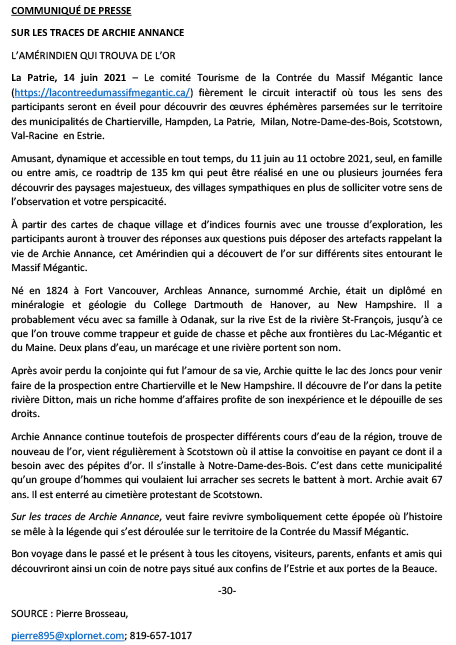 Le comité Tourisme de la Contrée du Massif Mégantic lance (https://lacontreedumassifmegantic.ca/) fièrement le circuit interactif où tous les sens des