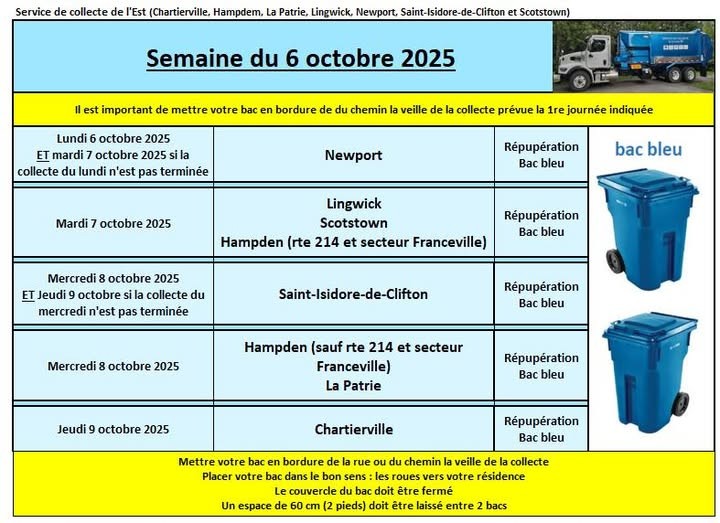 Cueillette des déchets | Bac pas vidé | Écocentre | Écocentre mobile |