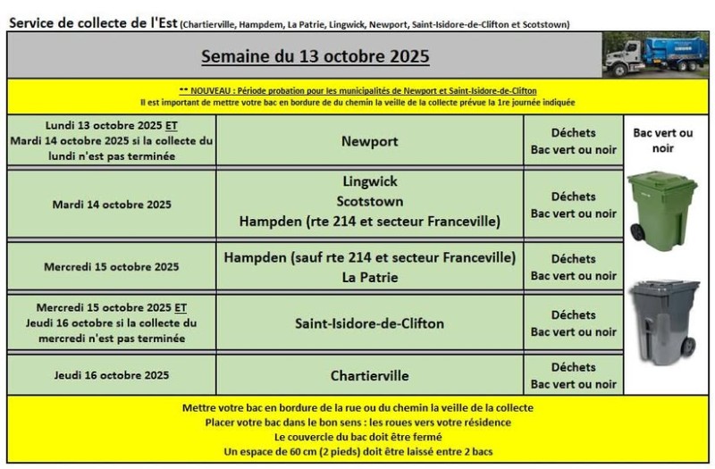 Cueillette des déchets | Bac pas vidé | Écocentre | Écocentre mobile |