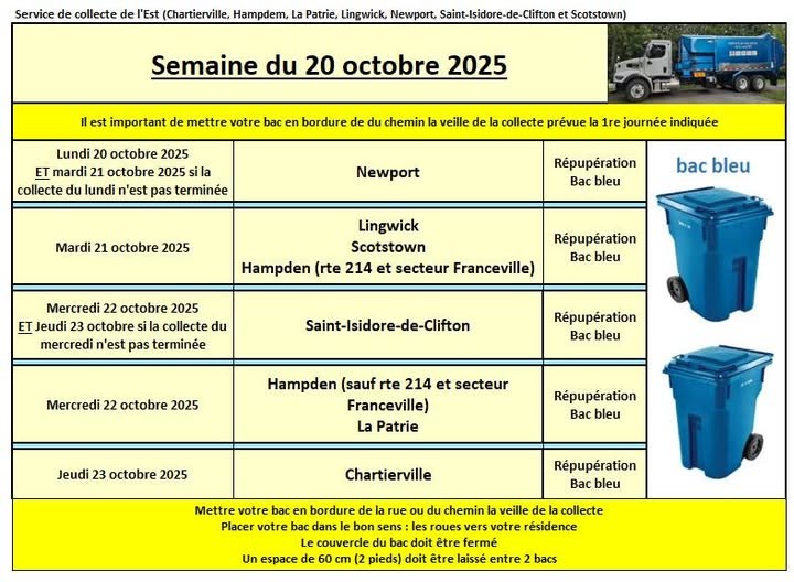 Cueillette des déchets | Bac pas vidé | Écocentre | Écocentre mobile |