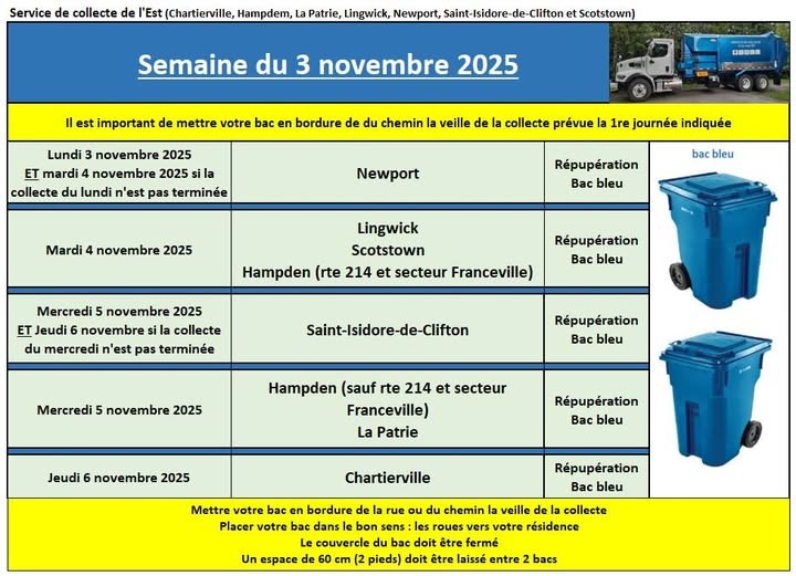 | Cueillette des déchets | Bac pas vidé | Écocentre | Écocentre mobile |