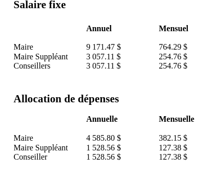 | Rémunération des élus |