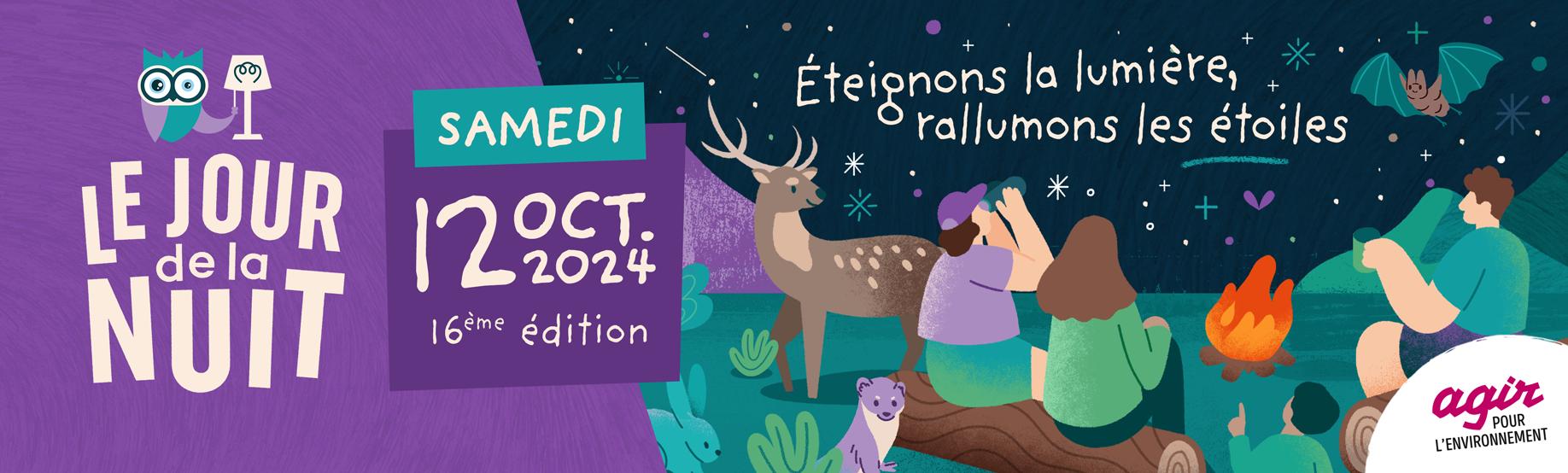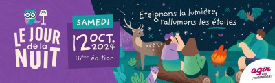 Le Jour de la Nuit, c'est aussi l'occasion d'organiser des activités le samedi 12 octobre 2024 autour du thème de la nuit: des soirées artistiques dédiées à la nuit, des sorties nature et astronomie, des expositions photos, des lectures de contes au coin du feu... Visitez le Jour de la Nuit pour inscrire votre événement.