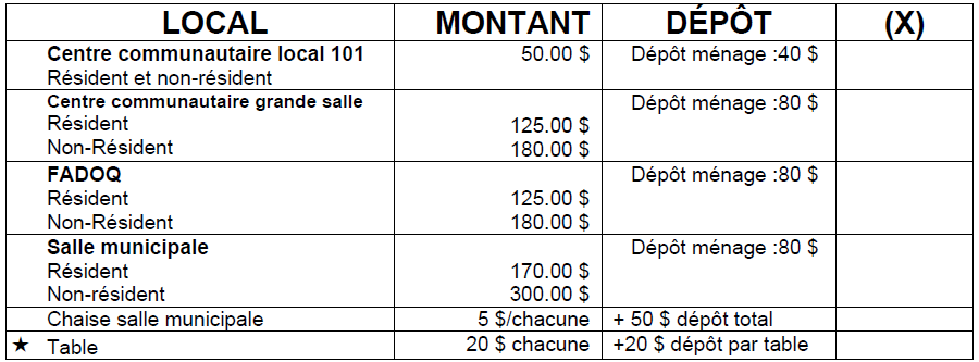 | Télécopies locales | 1.00 $ |
